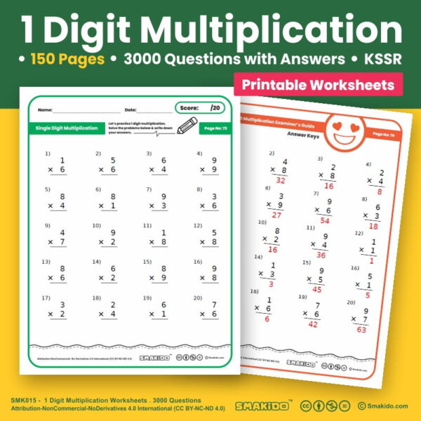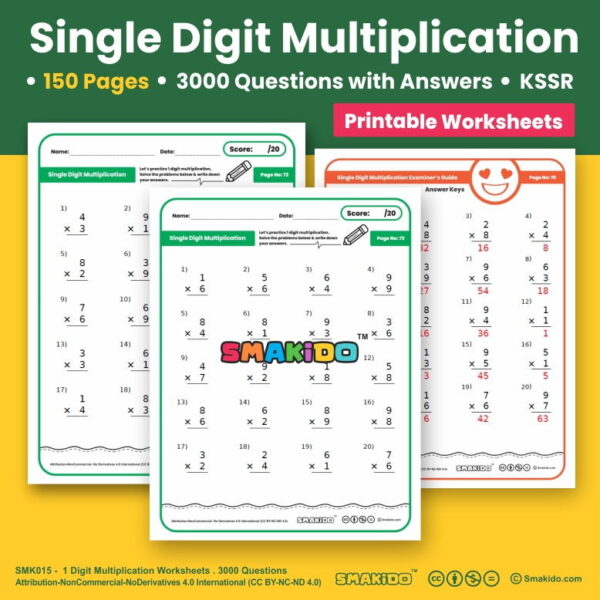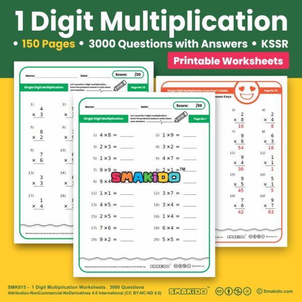 This single-digit multiplication worksheet is configured for the vertical and horizontal format. Kids can practice math questions involving single-digit multiplication with this simple multiplication worksheet. These worksheets are the perfect exercises for students to improve your mathematics. Smakido worksheets are perfect for teachers or parents as these worksheets come with answer key for easy assessment.