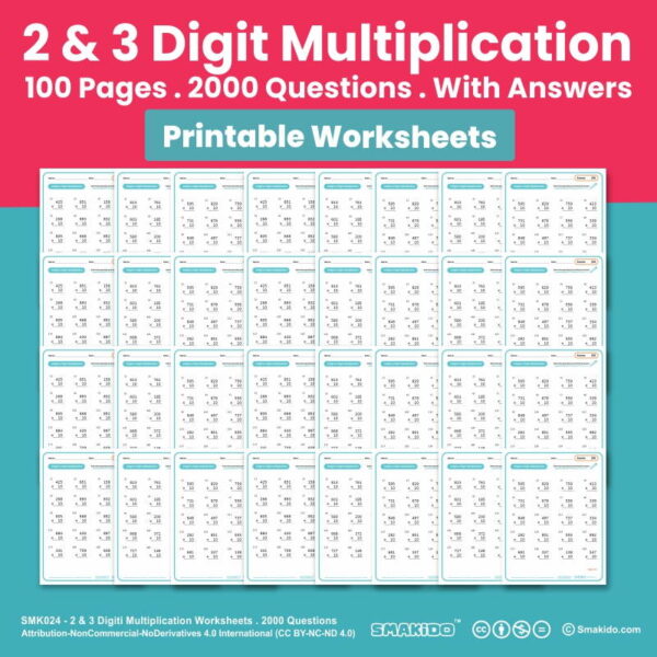 Printable 2 & 3 multiplication math worksheets are educational resources designed for students who are learning or practicing their multiplication skills. These worksheets typically include a series of math problems involving multiplication of 2 and 3-digit numbers.