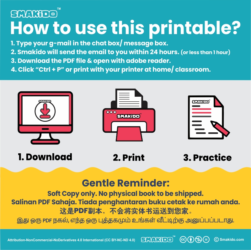 5. Free for commercial use such as in the classroom, school, kindergarten, private tuition center or at home.