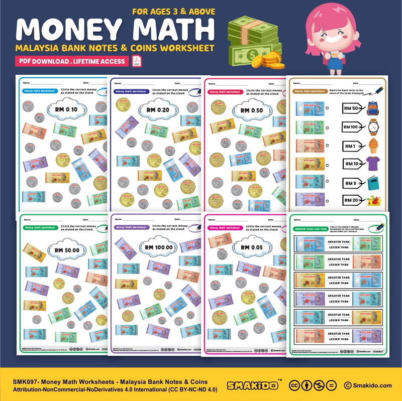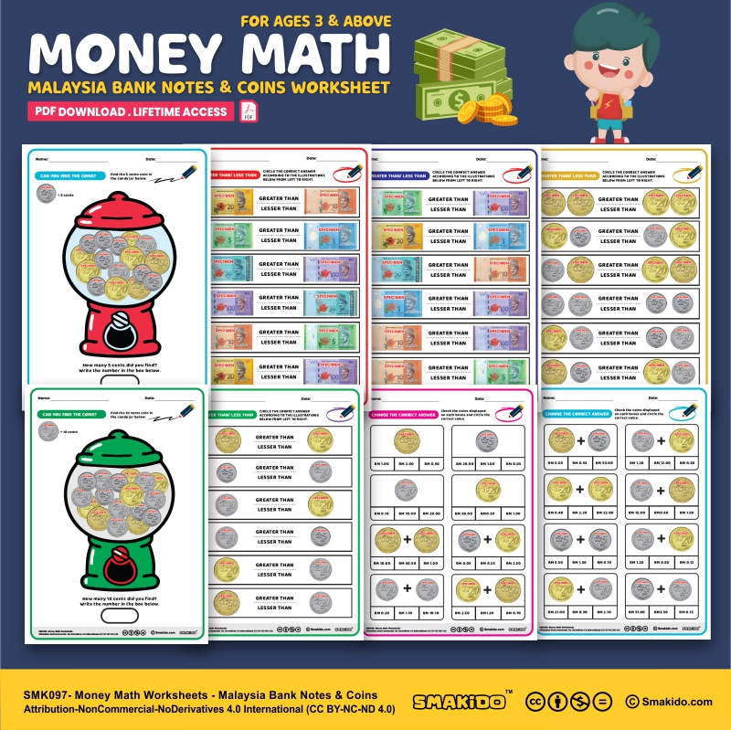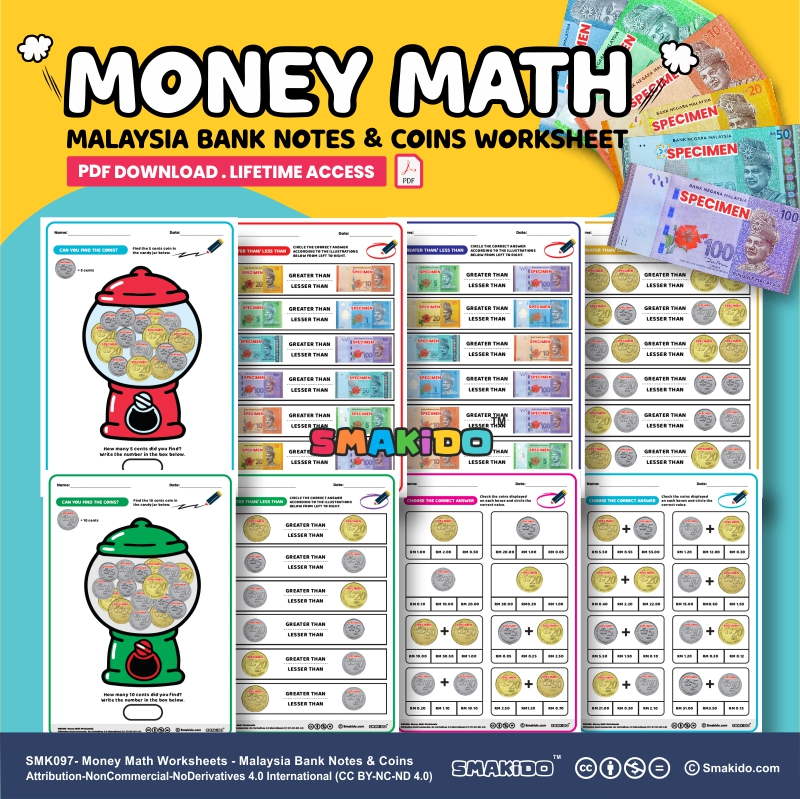 Printable Money Math Worksheets | Learn Malaysia Bank Notes & Coins | Preschool and Primary School Worksheets [ PDF ]