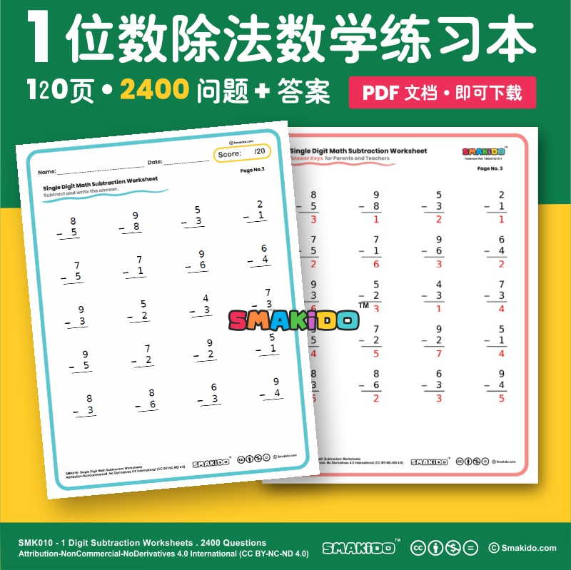 🟢 120 worksheets with answer keys. (Total = 2400 answers)