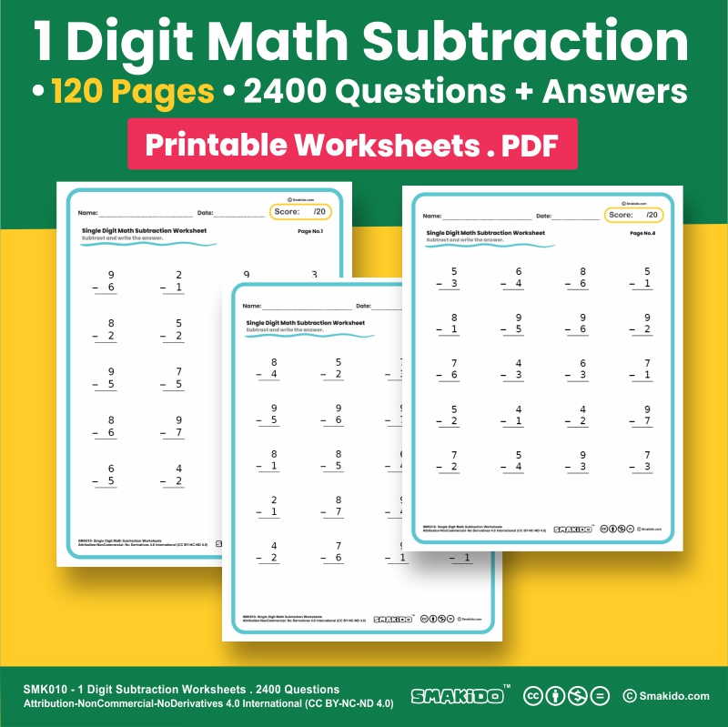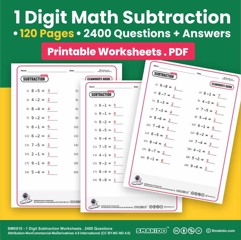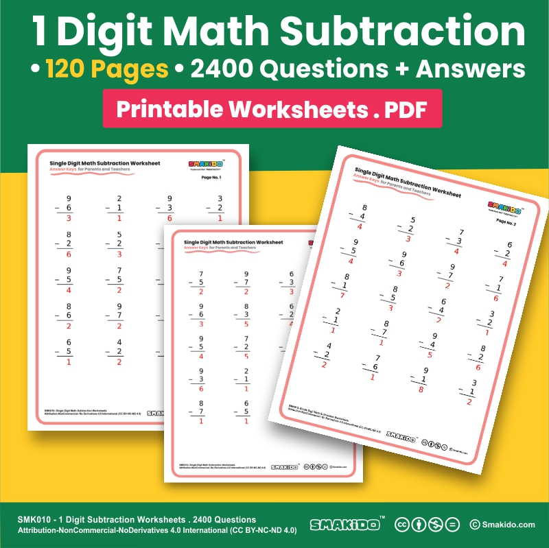 Printable 1 digit subtraction math worksheets are educational materials that contain math problems involving subtraction of numbers with one digit. These worksheets are designed to help students practice and improve their subtraction skills, such as understanding the concept of subtraction, mastering subtraction facts, and developing problem-solving abilities.